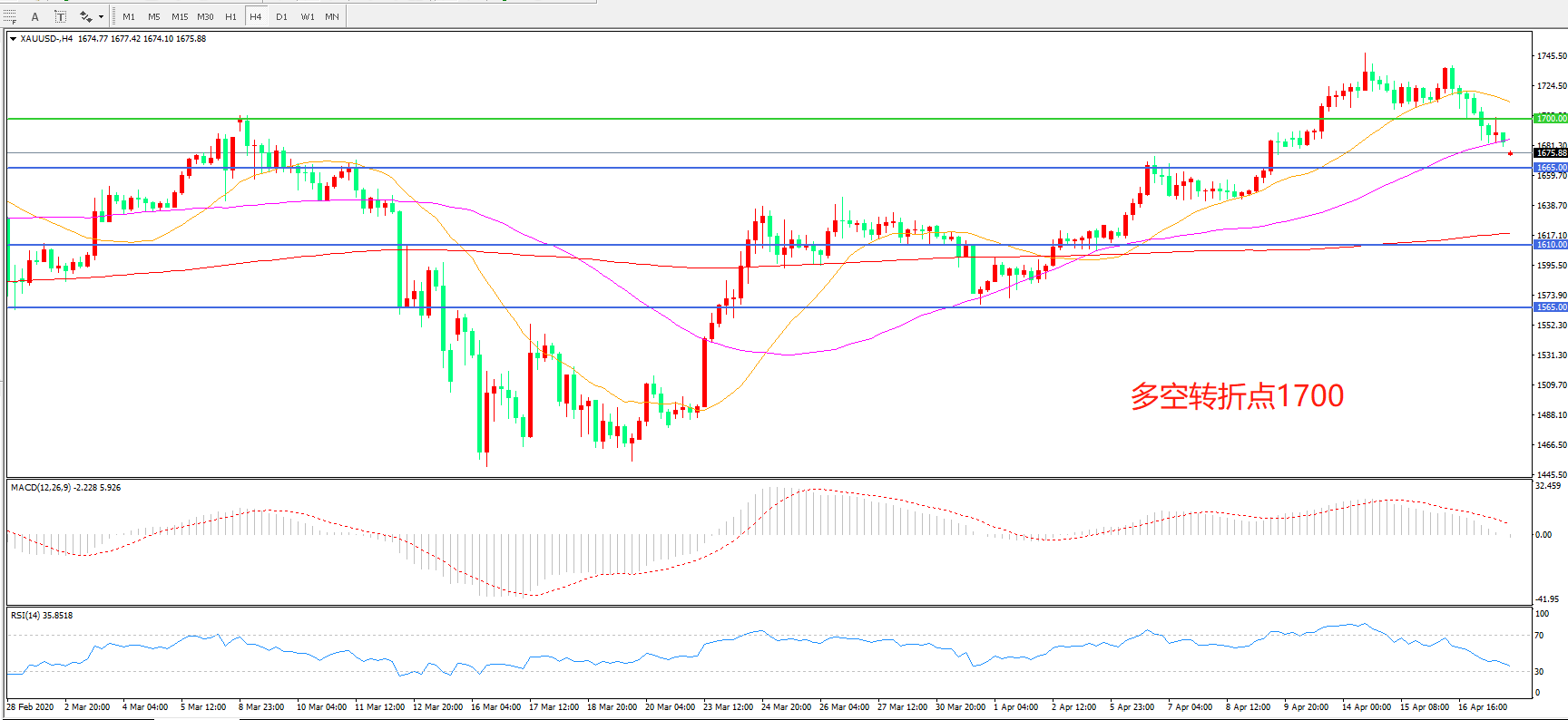 交易策略:   在1700.00 之下看跌,目标1665.00   1610.00