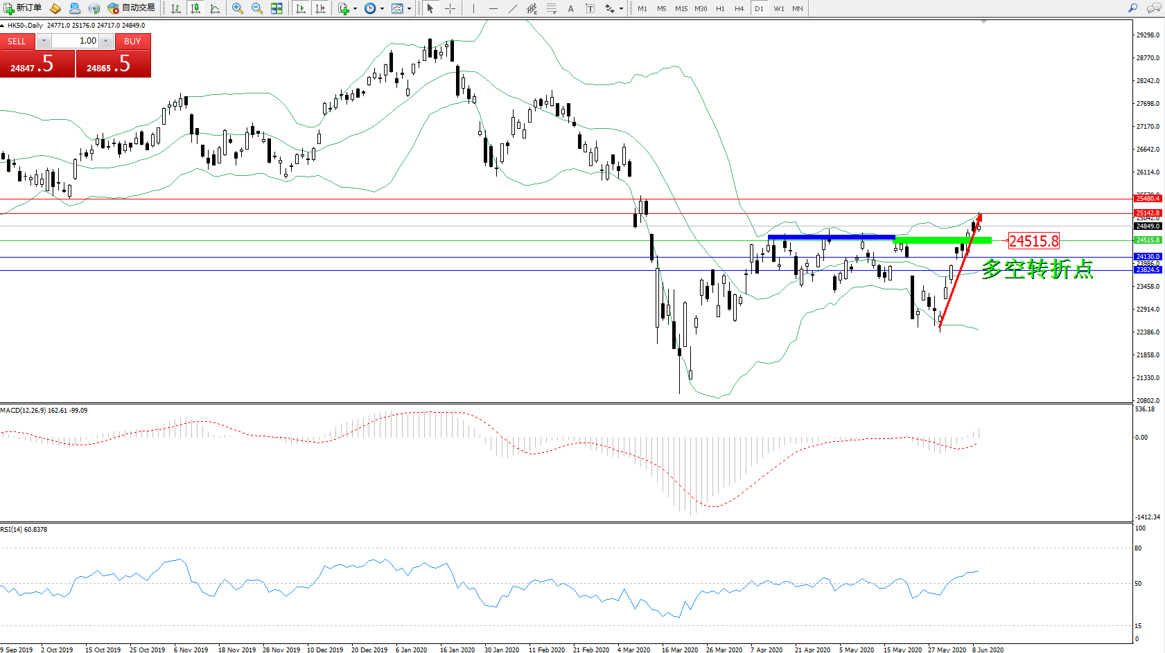 恒指HK50 ——日K线图显示: