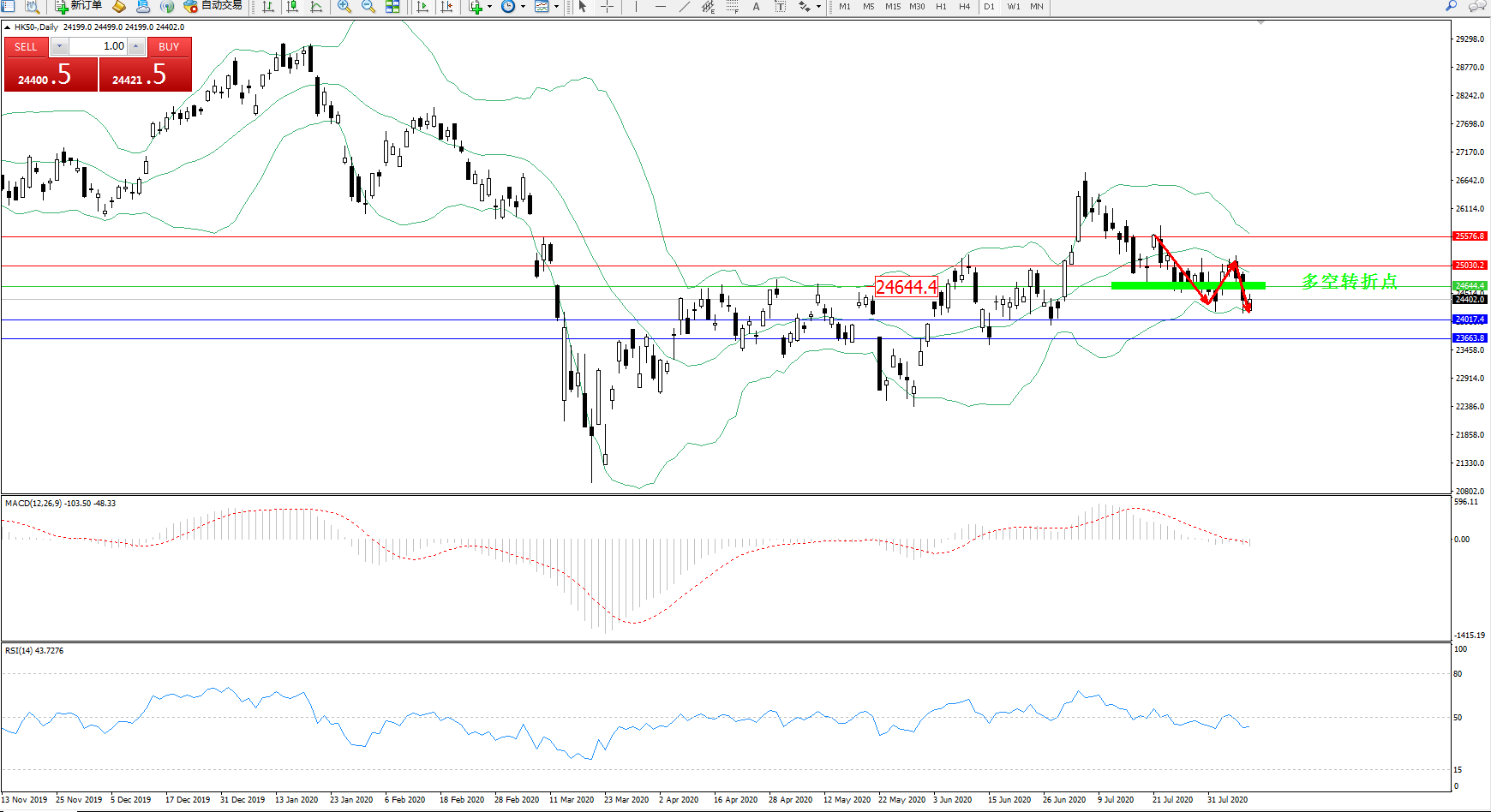 恒指HK50 ——日K线图显示:
