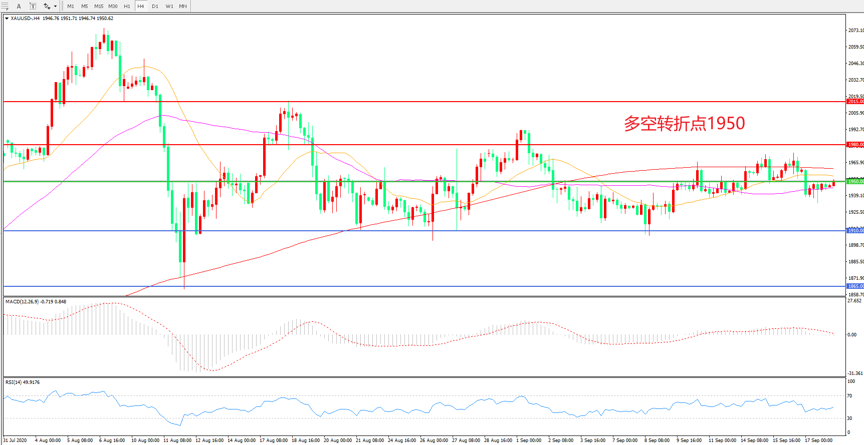 多空转折点:1950.00