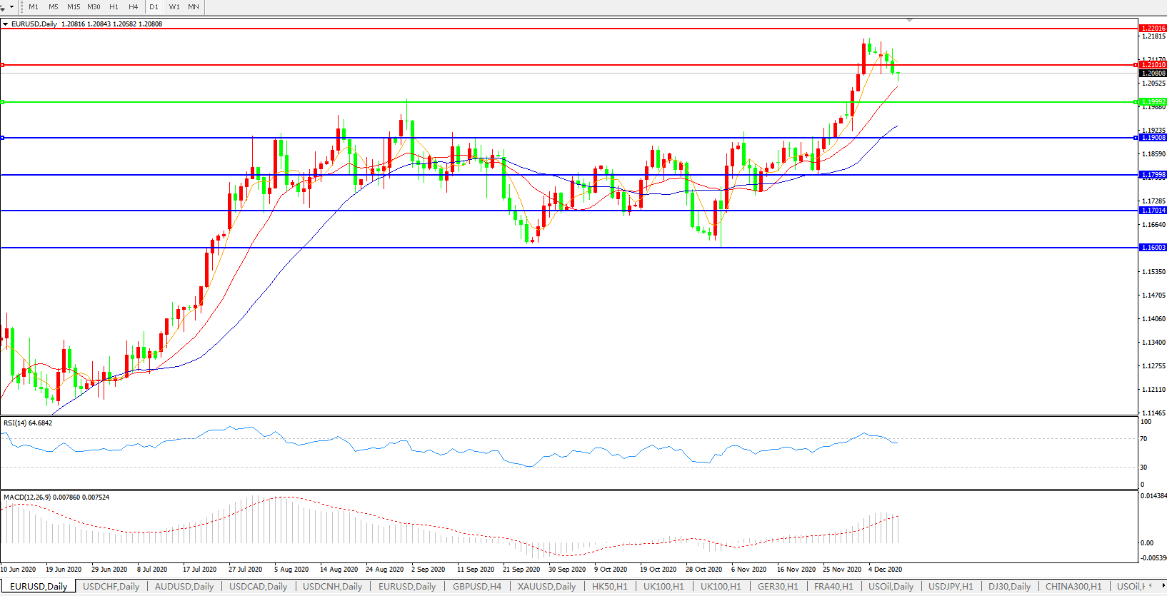 欧元兑美元EURUSD   日线图: