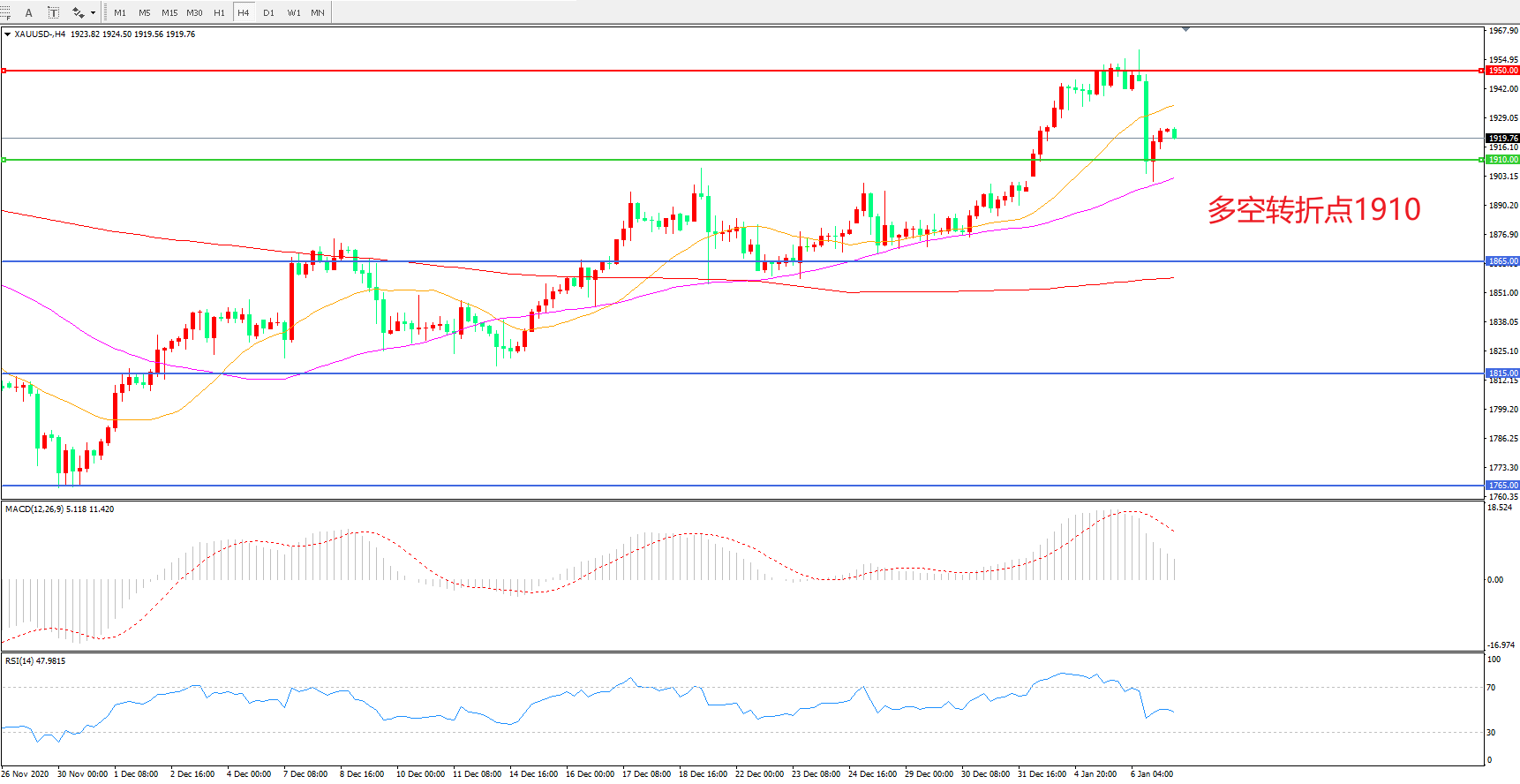 现货黄金XAU/USD 4小时图