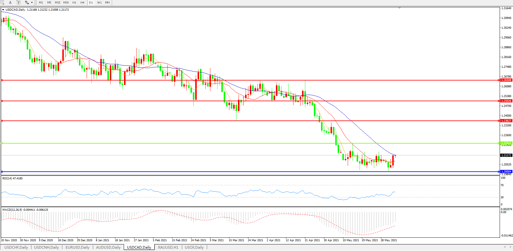 美元兑加元USDCAD 日线图: