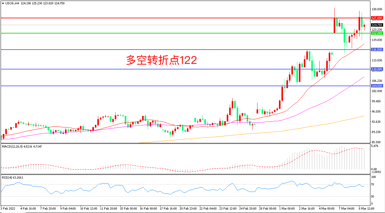 交易策略:在122.00之上看涨,目标127.00           130.00