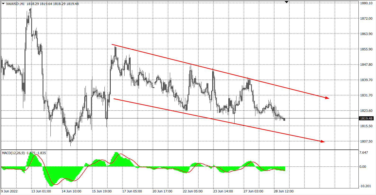 现货黄金XAUUSD 1小时图