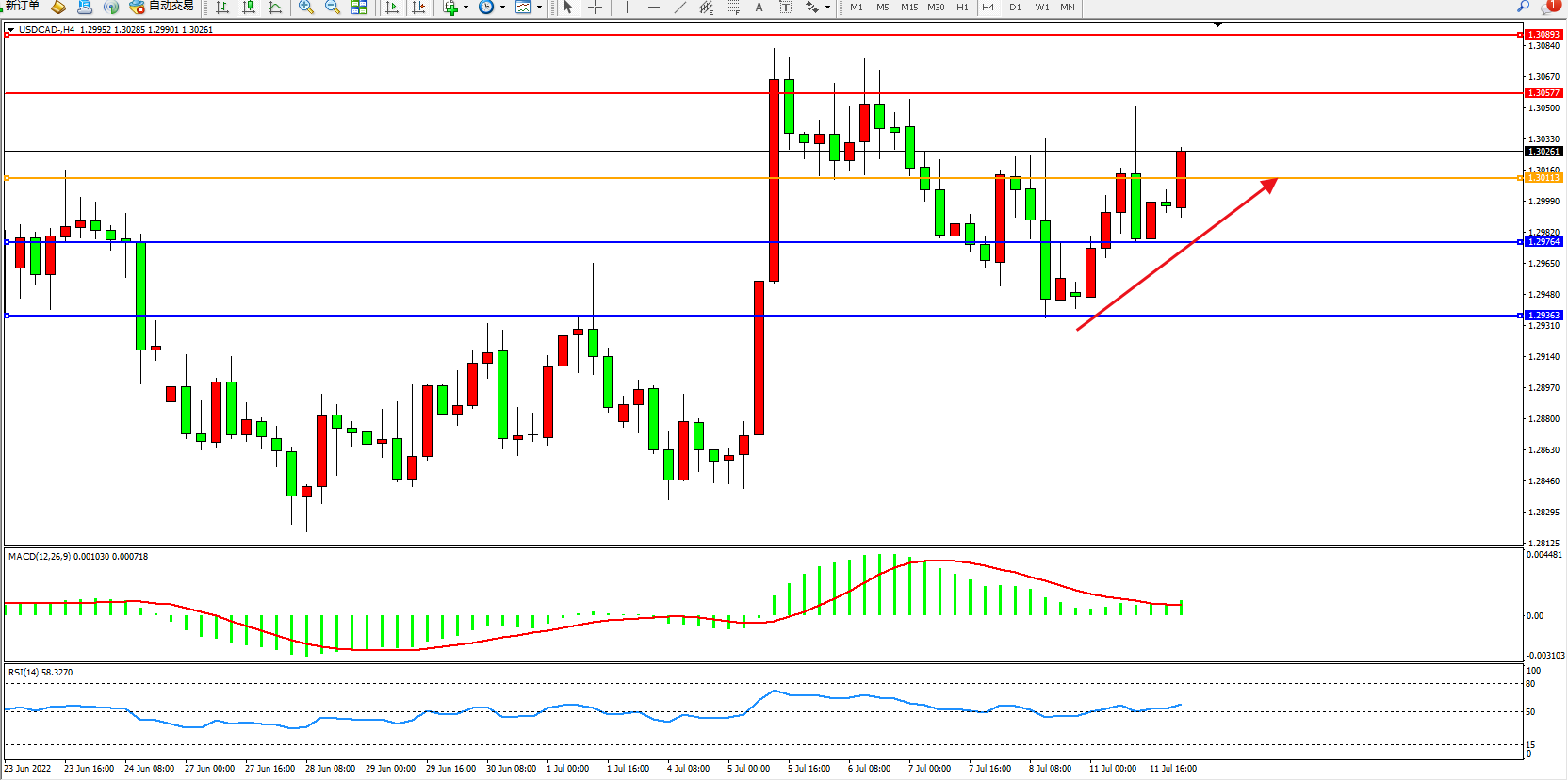 4小时图看:短期处于高位整理回撤后,多头动力开始蓄力,多头试探性上移,MACD指标处于0轴线上側多头区域维持弱势整理,RSI指标处于50均衡线上側徘徊;