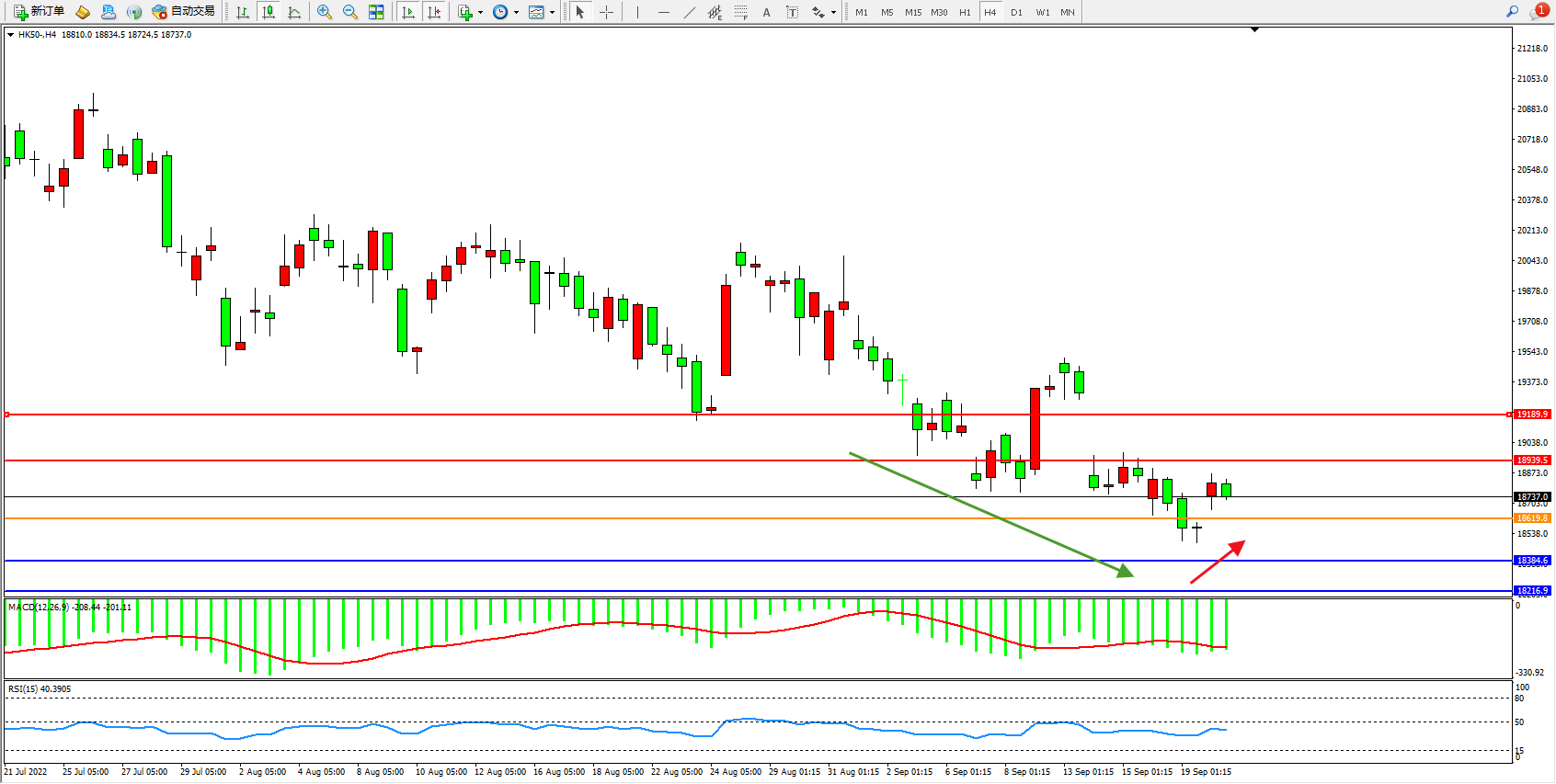 恒指HK50 4小时图
