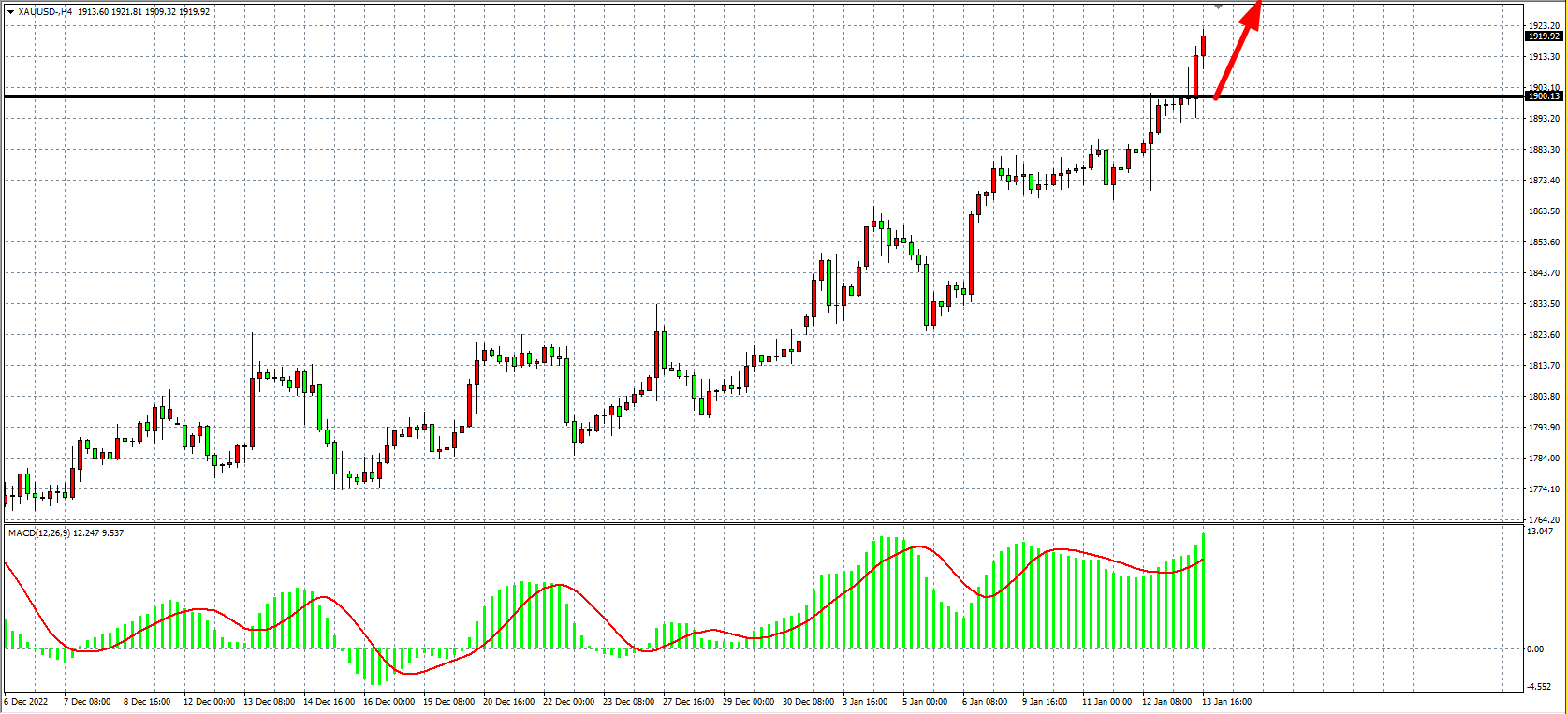现货黄金XAUUSD 4小时图